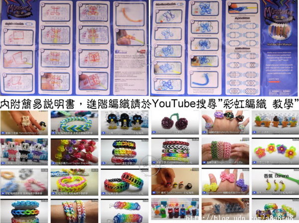 ◆色彩鲜艷橡皮筋做出不同的可愛動物造型玩偶可當擺飾,增加童年樂趣,可自行至YOUTUBE教學網站搜尋"彩虹編織 教學"! |