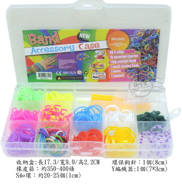 ◆材質~橡皮/壓克力/塑膠(難免會有氧化及消耗損傷、使用後均無法退換貨) ◆環保鉤針為塑膠材質,難免因拉扯、用力不當斷裂,建議可以加購"鐵製鉤針"https://tw.search.bid.yahoo.com/search/booth?ei=UTF-8&seller=Y3196392168&cat=&p=%E5%8B%BE%E9%87%9D ◆輕便編織盒小巧隨身好攜帶,滿足孩子隨時隨地想編織的樂趣! ◆多種組合方式橡皮圈可隨心編織出多種手環、戒指、項鍊、髮飾、配飾、動物造型。。。等,益智DIY讓大小朋友都愛不釋手發揮想像力的手工創意玩具。