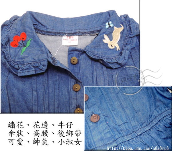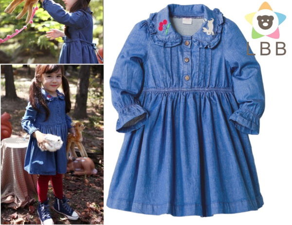 【AG069】AG69牛仔洋裝 LBB 長袖 彈性 伸縮 單寧 花邊 中高腰 傘狀 洋裝~ 尺寸~86.90.100.110.120.130.140 款式~如圖單一款式! 單價~一件250元 |
