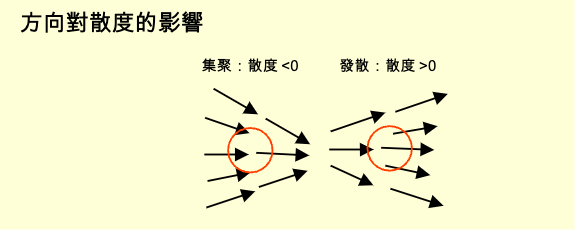 散度(divergence)與旋度(curl)也有同樣的現象。在一般數學書中通常將散度與旋度分別獨自解說。好似兩者是各自獨立的觀念。其實兩者密切相關。