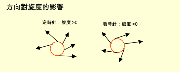 為什麼不能直接用切面分量相加而需要叉積產生的旋量相加呢?這是因為旋向是由法線方向與切面分量共同決定。只用切面分量無法決定旋向。旋量的旋向是由沿著旋量的逆時針方向。因此旋量可以單獨決定旋向。