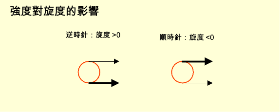 旋度代表的是向量場在空間點對周圍空間旋轉的變化率。一個點周圍的向量影響旋度有方向與強度兩個維度。周圍的向量偏轉的方向是順時針,旋度是逆向。越偏轉,旋度逆向越強。反過來,周圍的向量偏轉的方向是逆時針,旋度是正向。越偏轉,旋度正向越強。這是方向的影響。向量強度的影響是,周圍的向量順時針方向越強,逆時針方向越弱,旋度越逆。反之,逆時針方向越強,順時針方向越弱,旋度越正。逆時針旋轉,旋度指向上方。順時針旋轉,旋度指向下方。旋度絕對值越大,對於空間的旋轉的幅度越大。這才是旋度的本意。