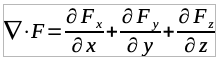 在空間任何一點的散度是函數向量在該點x,y,z各自的分函數偏微分的和。