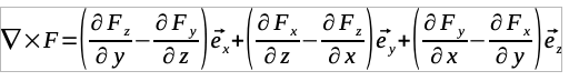 在空間任何一點的旋度函數向量在該點x,y,z各自的分函數偏微分交叉相減。