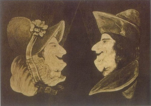 求愛階段還是結婚之後:這對情侶是高興快樂還是悲傷不高興?(下圖倒過來看)是兩個老人或是兩個年輕人?
