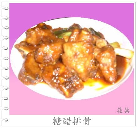 材料:排骨少許、蔥一根、蒜頭三粒、沙拉油少許、米酒、蕃茄醬、糖、醬油、蕃薯粉、烏醋、塩、水。