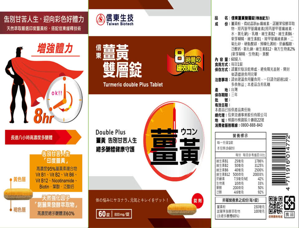 【信東生技】+薑黃雙層錠2入組(精進配方)詳細說明: