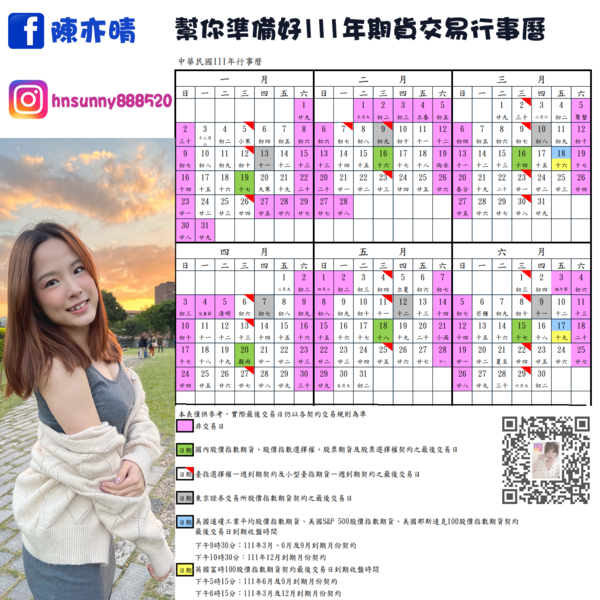 民國 111 年期貨集中交易交易行事曆及結算日 IG👉🏻https://www.instagram.com/hnsunny888520/