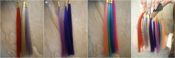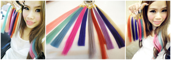 利用貼片接髮的方式把鮮豔的馬卡龍色系接在真髮上