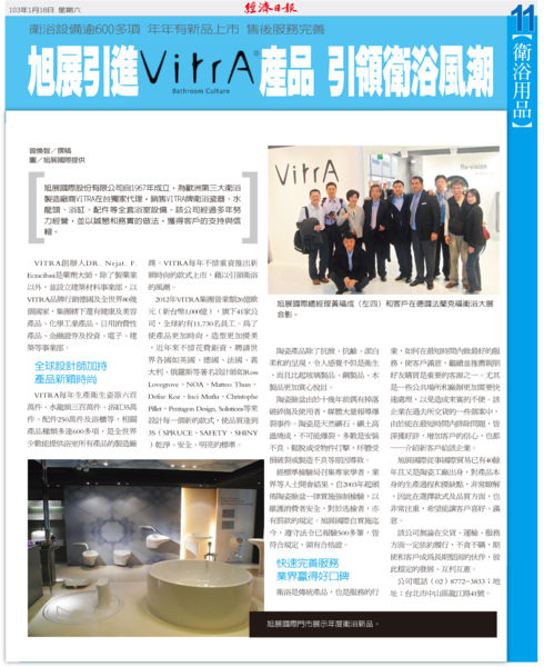 旭展國際股份有限公司自1967年成立,為歐洲第三大衛浴製造廠商VITRA在台獨家代理,銷售VITRA牌衛浴瓷器、水龍頭、浴缸、配件等全套浴室設備。該公司經過多年努力經營,並以誠懇和務實的做法,獲得客戶的支持與信賴。 VITRA創辦人DR. Nejat. F. Eczacibasi是藥劑大師,除了製藥業以外,並設立建築材料事業部,以VITRA品牌行銷德國及全世界80幾個國家,集團轄下還有健康及美容產品、化學工業產品、日用消費性產品、金融證券及投資、電子、建築等事業部。 全球設計師加持 產品新穎時尚 VITRA每年生產衛生瓷器六百萬件、水龍頭三百萬件、浴缸35萬件、配件250萬件及浴櫃等,相關產品種類多達600多項,是全世界少數能提供浴室所有產品的製造廠商。VITRA每年不惜重資推出新穎時尚的款式上市,藉以引領衛浴的風潮。 2012年VITRA集團營業額26億歐元(新台幣1,000億),旗下41家公司,全球約有11,730名員工。為了使產品更加時尚,造型更加優美,近年來不惜花費鉅資,聘請世界各國如英國、德國、法國、義大利、俄羅斯等著名設計師如Ross Lovegrove、NOA、Matteo Thun、Defne Koz、Inci Mutlu、Christophe Pillet、Pentagon Design, Solutions等來設計每一個新的款式,使品質達到3S(SPRUCE、SAFETY、SHINY)乾淨、安全、明亮的標準。 陶瓷產品除了抗酸、抗鹼、潔白柔和的呈現,令人感覺不但是衛生,而且比起玻璃製品、鋼製品、木製品更加賞心悅目。 陶瓷臉盆由於十幾年前偶有掉落破碎傷及使用者,媒體大量報導爆裂事件。陶瓷是天然礦石、礦土高溫燒成,不可能爆裂,多數是安裝不良、鬆脫或受物件打擊,坏體受損破裂或製造不良等原因導致。 經標準檢驗局召集專家學者、業界等人士開會結果,自2003年起頒佈陶瓷臉盆一律實施強制檢驗,以維護消費者安全,對於逃檢者,亦有罰款的規定。旭展國際自實施迄今,遵守法令已報驗500多筆,皆符合規定,領有合格證。 快速完善服務 業界贏得好口碑 衛浴是傳統產品,也是服務的行業,如何在最短時間內做最好的服務,使客戶滿意,繼續並推薦親朋好友購買是重要的客源之一。尤其是一些公共場所和廠辦更加需要快速處理,以免造成來賓的不便。該企業在過去所交貨的一些個案中,由於能在最短時間內排除問題,皆深獲好評,增加客戶的信心,也都一一介紹新客戶給該企業。 旭展國際從事國際貿易已有40餘年且又是陶瓷工廠出身,對產品本身的生產過程和優缺點,非常瞭解,因此在選擇款式及品質方面,也非常注重,希望能讓客戶喜好、滿意。 該公司無論在交貨、運輸、服務方面一定依約履行,不貪不瞞,期使和客戶成為長期堅固的伙伴,彼此穩定的發展、互利互惠。 公司電話(02)8772-3833;地址:台北市中山區龍江路41號。 【2014-01-18/經濟日報/T11版/衛浴用品】 |