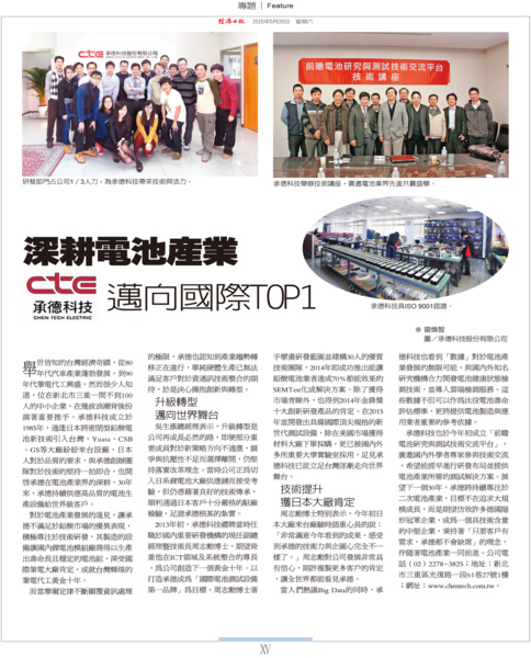 承德科技也於今年初成立「前瞻電池研究與測試技術交流平台」,廣邀國內外學者專家參與技術交流,希望能提早進行研發布局並提供電池產業所需的測試解決方案。展望下一個30年,承德將持續專注於二次電池產業,目標不在追求大規模成長,而是期望仿效許多德國隱形冠軍企業,成為一個具技術含量的中堅企業,秉持著「只要客戶有需求,承德都不會缺席」的理念,伴隨著電池產業一同前進。公司電話(02)2278-3825;地址:新北市三重區光復路一段61巷27號1樓;網址:www.chentech.com.tw。