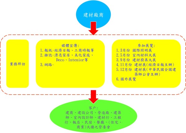 b.建築市場(一般磁磚公司的強項):主要與建築師及建設公司合作