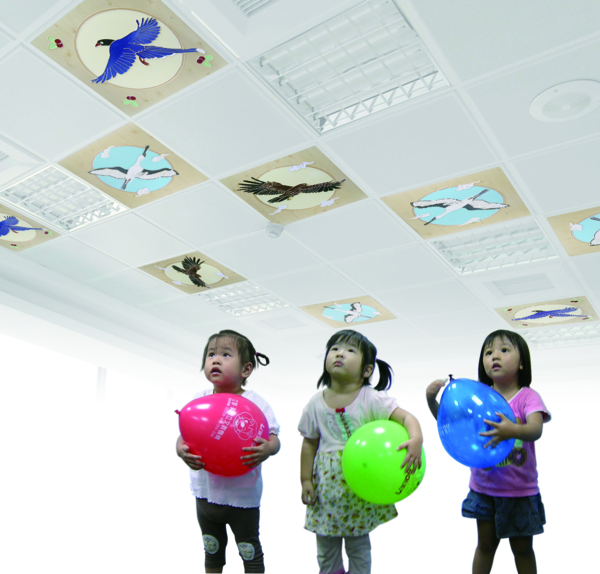 澄岳國際最新開發之月光工藝天花板,是將大自然移入室內,讓空間充滿生命力。該產品以手工精緻繪圖與彩繪、圖案立體、客製化設計、安裝容易、材質優良等特點,獲得許多飯店、辦公室、學校、醫院、診所及療養院紛紛採用。