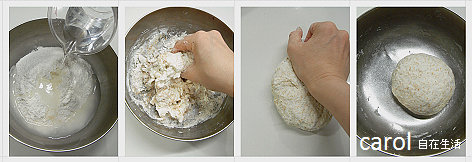 中筋麵粉250g,全麥麵粉100g,冷水175cc,鹽1/3茶匙