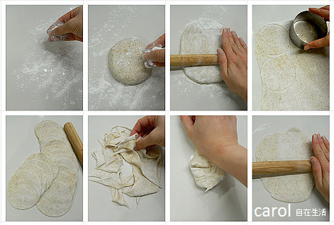 2.壓餃子皮用具可以利用杯子,餅乾模或小慕斯模等,大小可以