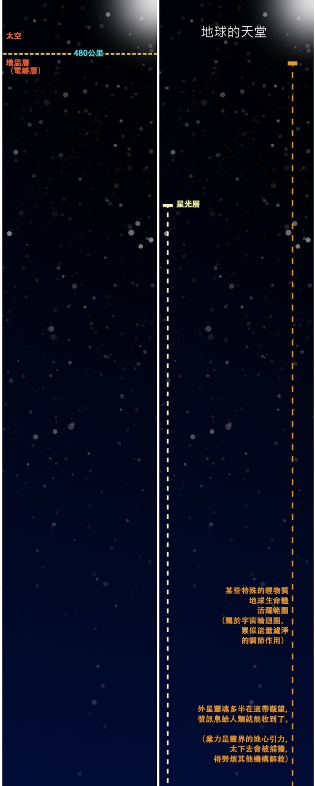 佛法說:成、住、壞、空、成、住、、、但沒有說如何從空到成(有),道家說「無極生太極」,佛家「真空生妙有」亦是,簡單一句話帶過,真相為何?這些文章解開我對佛法的許多疑問,從作者的角度來看,法界是以靈界為主體,來地球來只是靈魂在玩一場遊戲,一個虛擬實境,但在這個虛擬實境中,會痛、會哭、會喜、會樂,當事者從來都不會認為這只是一場遊戲,因為來這場遊戲前都被消除掉過去的記憶,但這確實是由真正的你(你的靈魂)來決定的,每次遊戲結束後,都以為自己可以在下一回遊戲中做得更好,能夠從地球實驗裡畢業,但是很難,這是一款很難突破的遊戲,遊戲的莊家是GAIA地球母親,我們都是膽大包天的玩家,敢進入地球來。