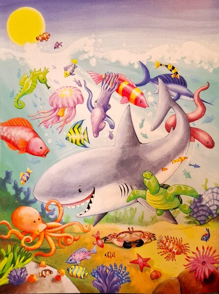 不管神說了什麼,什麼就會出現。神創造了天空和海洋、土地和植物、日月和星辰。接著,神開始創造住在大海裡的許多動物:「章魚!鯊魚!水母!海龜!」神說完哪個動物,哪個動物就被創造。