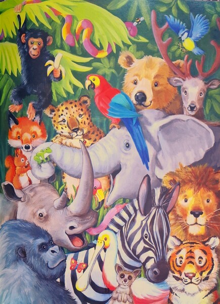然後,神創造了許多住在陸地上的動物,有的跳著、有的跑著、有的爬著。神說:「嗨,獅子!嗨,小狐狸!歡迎,老虎!你們都很棒。」