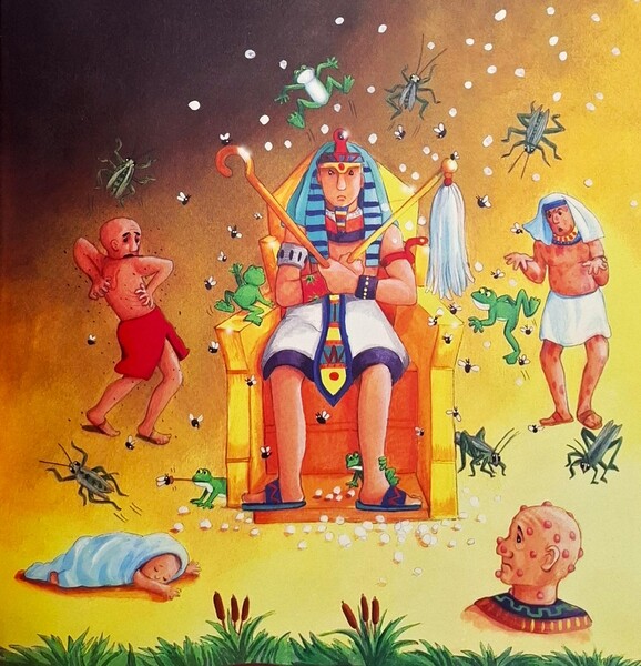 後來神就讓埃及發生十件可怕的災禍,只有以色列人平安無事。神用這些災禍讓法老王改變想法,給以色列人自由。這十件災禍有:1.尼羅河水變成血。2.青蛙滿地跳。3.空氣中遍佈虱子。4.蒼蠅大軍到處飛。5.動物都生病得瘟疫。6.埃及人都生病長瘡。7.冰雹擊打農作物。8.蝗蟲吃光農作物。9.三天三夜一片黑暗。但最糟的還沒來… 10.埃及人的長子都死了。
