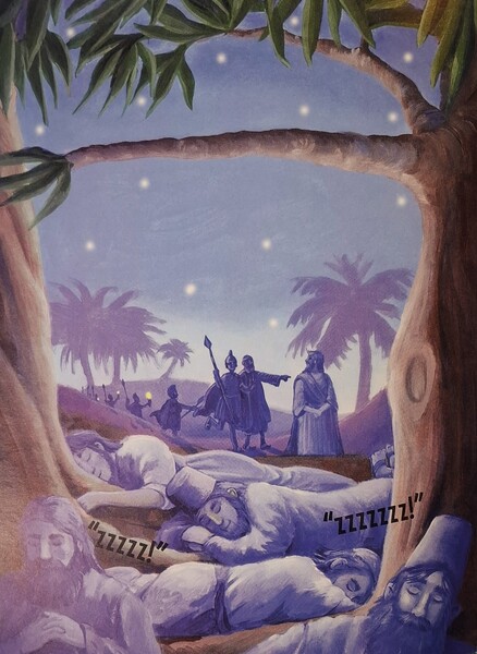 用餐過後,耶穌帶著門徒去客西馬尼園,要他們保持清醒,和衪一起禱告。但是他們都熟睡了,獨留耶穌一個人,衪需要和天父說話,耶穌祈禱:「父啊,照袮的意思做吧,不要依照我的。」突然,聽見有大聲說話和靴子行進的聲音向衪而來,是耶路撒冷掌權者們派來的士兵們,他們找到耶穌,就逮捕了衪。