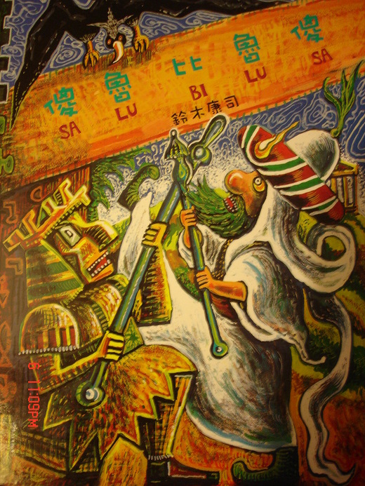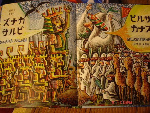 (開場:你看這兩個人在做什麼? 他們在看什麼?你覺得這兩個人的心情如何? 傻魯比魯傻是什麼意思? 請注意,這個故事講得話非常奇怪,請你們聽聽看,看看聽不聽得懂?) 魔奇(追)傻魯比(我or我的)祖拿卡(可惡)比累(搶or被搶)