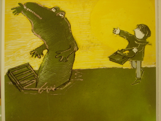 約翰派克羅門麥肯錫走路上學,下水道鑽出鱷魚咬住他書包不放,他丟一隻手套去引誘脫身,結果上學遲到,他報告老師 (你覺得老師會相信嗎?) 老師說下水道那裡會有鱷魚! 罰他寫三百遍 [不可說鱷魚謊和弄丟手套]。