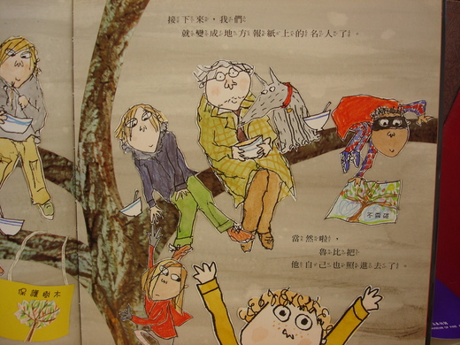 家人給他們加油,魯比以為是度假,小豆芽罵笨蛋,是在抗議!魯比說要有標語,於是小朋友幫忙畫標語,保護樹木,不要碰,還留字條給爸;爸看到字條「在樹上,帶吃的」,於是爸爸開始作肉醬麵;全家人在樹上吃麵,突然有人來照相,沒想到隔天變成地方名人了。
