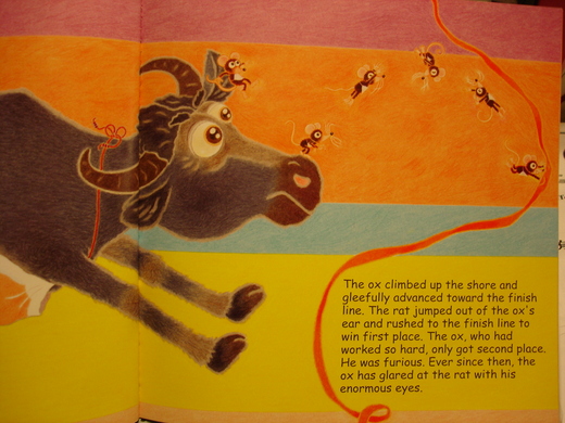 5.渡河時貓打瞌睡 6.鼠推貓落河 7.牛瞪眼看鼠搶第一