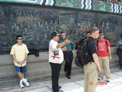從右至左,八個片段畫面巧妙「融接」在一起,紀實性及藝術性兼顧,非常值得一賞。謹將內容簡述如后:1.孔子謙遜重禮好學姿態(孔子好學好問,追根究底,向師襄學琴、老子問禮、萇弘問樂等均膾炙人口)→2.3.4.開創私人辦學之先(課程為「禮樂射御書數」→5.夾谷會盟陪同魯國國君,智勇過人,打贏外交戰→6.周遊列國問渡口(另曾遇神童項橐)→7.陳蔡國圍困,彈琴安撫弟子→8.返回魯國作春秋。
