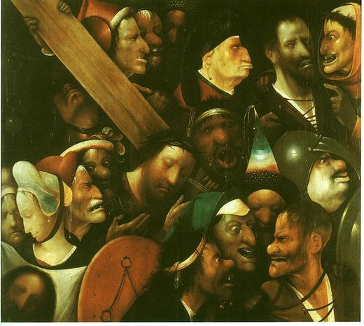 2.[戴著荊棘冠的耶穌]-本畫也是波西的作品,旁人作鬼臉,變形,反映無知人們。(無知怪臉真是傳神)