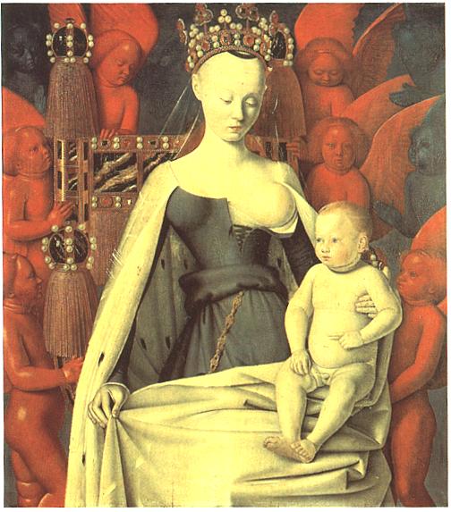 3.[聖母與聖嬰]-福格(法國人)本畫[聖母與聖嬰]帶有情色及雕刻趣味,模特兒據說是國王的情婦,傳統不會如此畫,但因法國的情婦常是公開的。(教會人士應該很不喜歡這一幅畫)