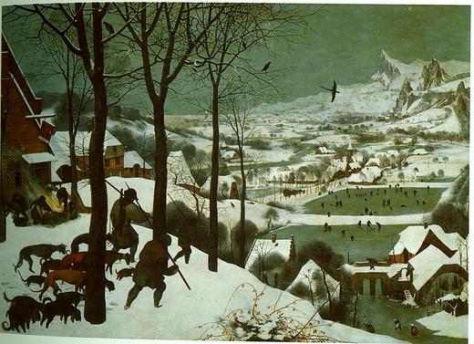 1.[雪中獵者]-布魯各(被稱為[農夫布魯各], 1527-1569)[雪中獵者],於行經阿爾卑斯山時所畫,高視點技巧,空曠優美。(是小時候最愛讀的一本書「爺爺和我」封面,剛好呼應爺孫倆愛去打獵)