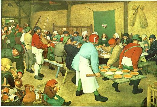 2.[農夫的婚禮]-布魯各的[農夫的婚禮],以單純簡樸來諷刺都市人的虛華刻薄,敏銳觀察人的細微動作。(擺脫宗教畫的神聖超然,回歸平凡百姓的寫實生活)