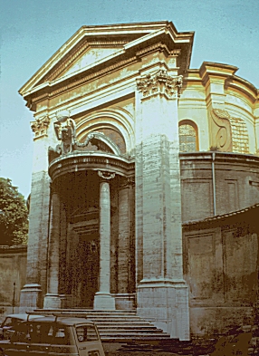 2.[四泉聖卡洛教堂]-此建築在羅馬,係馬德洛的弟子波洛米尼(BORROMINI)的作品,是巴洛克代表典型;四泉聖卡洛教堂有流動感,內有長廊,四端擠壓律動,好似有彈性,有弧線,有立體。