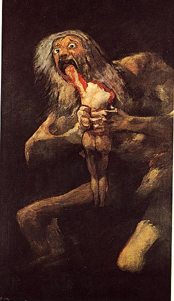 2.[濃神],為怕預言成真(兒子取他而代之),竟然吞了他的兒子;是超現實畫的先軀