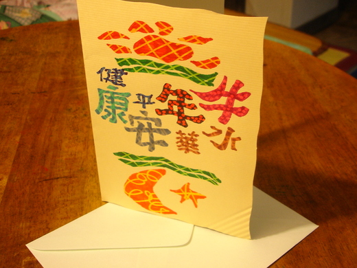 從買魔術彩色筆、卡片紙、信封,到寫打油詩以及文字檔再插入近三個月志工服務照片(為列印再補買墨水匣),耗費絕對遠超過選購賀年卡,而且還要費心思編輯內頁和畫外頁呢!不過,沒關係,新年心誠意。