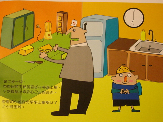 第二天一早,爸爸說要送小梅森上學,平常都是小梅森自己走路去上學。