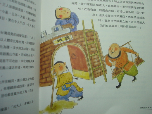 胖叔:你說對了,可是你們要知道,那時要蓋石頭城可不是件容易的事哦!當時的台灣知府方傳穟和鳳山知縣杜紹祁,都是相當幹練的官吏哦,他們在部屬的建議之下,決定重建舊城,並將土城改建成堅固的石頭城,因為他們認為啊,舊城距離打狗港比較近,又有龜山和蛇山在左右護衛,是控制海防、阻犯來敵的好地方。可是啊…
