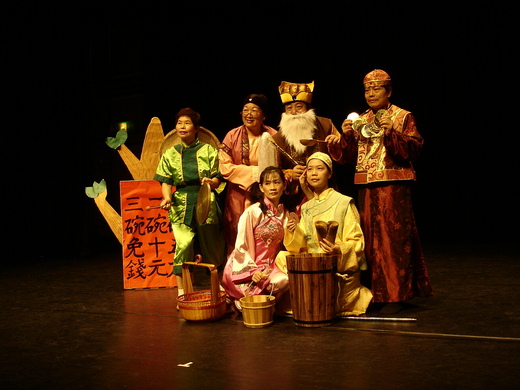 (於是,「轟」的一聲,在白色雲霧中,賣湯圓的老頭子搖身變成了仙人呂洞賓,大家一陣驚呼聲)