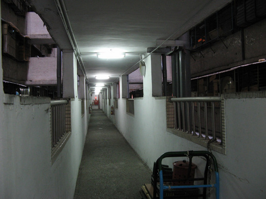 電梯門開了,一出電梯,我馬上退回來,因為陽台一條通道居然全部黑暗未亮燈!