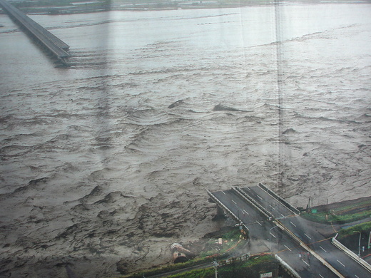 雙園大橋完工迄今已逾20年,現已斷裂成前後兩截,中間長達465公尺的橋面墜落溪底,只剩殘留的橋墩矗立在惡水寒風中,整條高屏溪就像一片灰黑的汪洋。