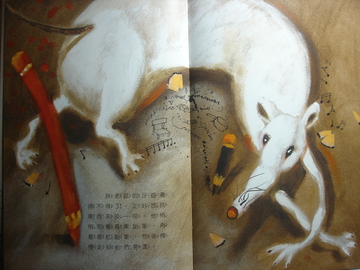 胖老鼠突然感覺牙齒好癢,想要找個東西咬一咬,於是悄悄地走到黑鉛筆和紅鉛筆旁邊…這時,黑鉛筆擦了擦眼淚,又開始寫故事,而紅鉛筆還是坐在旁邊想啊想的。