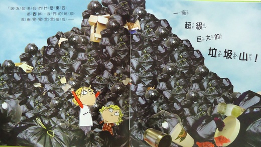 蘿拉先準備三個大箱子,分別用來裝塑膠瓶罐、鐵鋁罐和廢紙,然後蘿拉在家裡找啊找的,沒多久就大叫:「查理你看,我回收了兩個塑膠空盒、一個鐵鋁罐和一份報紙耶~你趕快把草莓冰淇淋吃完啦~」結果沒等查理吃完,蘿拉就把塑膠冰淇淋盒搶來回收了!過了一會兒,蘿拉又把捲筒衛生紙全部拉出來:「查理,看到沒?我回收了一個衛生紙捲筒!」查理跟她說,要慢慢用才行,建議蘿拉請其他同學一起來幫忙。