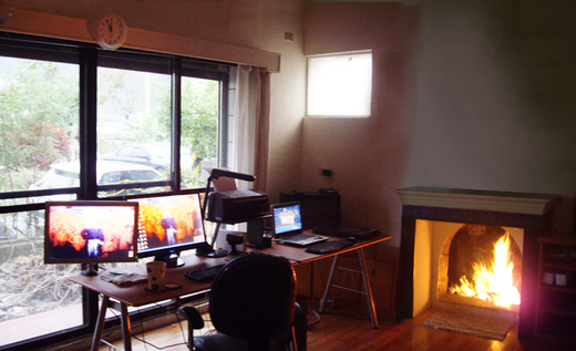 完工後雖壁面尚無法稱之平滑如鏡,已是十分滿意。完全平滑需磨砂機械打平,余雖有電動工具,打磨會塵土飛揚極不環保,兩害權輕,傾向維持自然放棄磨平。此時灰土白土尚餘一半,產品十分超值,以桶封裝留日後修補。 再於壁爐上方裝置簡易木架,即甚有荒原氣息。此壁爐外包大理石,余以為用紅磚會更具協調感,暫將改造納入日後計畫。