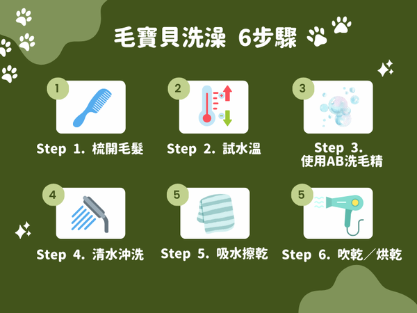 洗澡前先梳理毛髮,可去除廢毛與灰塵,減少糾結。