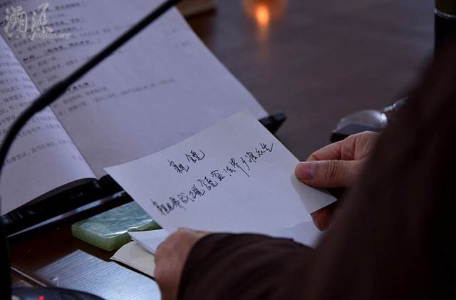 36/40和尚為新剃度的沙彌師父宣佈法名,並發給每人一張寫著法號及其含義的紙條。(圖片來源:溯源佛教網)