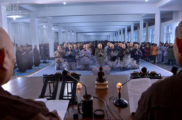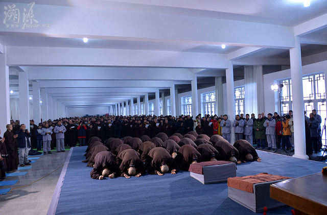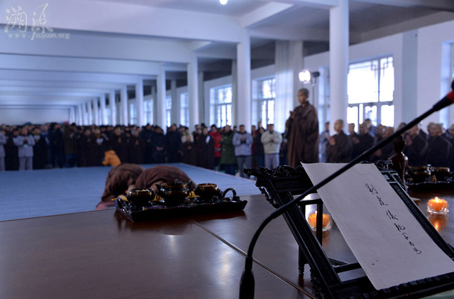 1/402015年1月27日,農曆十二月初八,釋迦牟尼佛成道日,遼寧海城大悲寺28位發心出家的居士通過考驗,辭親割愛,剃髮染衣,出家而為沙彌。共有約2000餘人隨喜參加剃度儀式。(圖片來源:溯源佛教網)