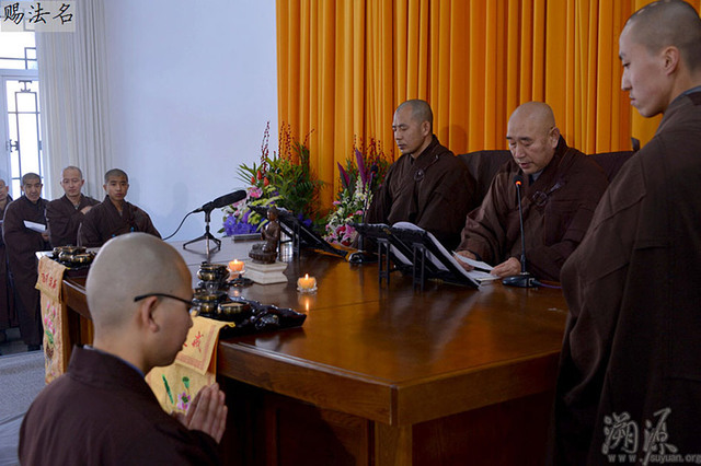 35/40剃度完畢,得戒和尚為新剃度的沙彌師父賜法名。(圖片來源:溯源佛教網)