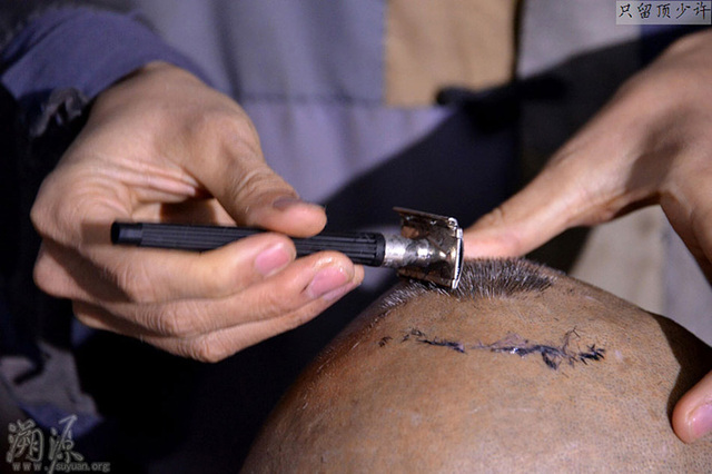16/40只留下頂上的少許頭髮(圖片來源:溯源佛教網)