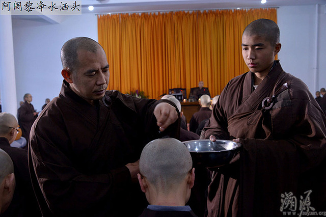 27/40出家阿阇黎為等待剃度者灑淨水(圖片來源:溯源佛教網)